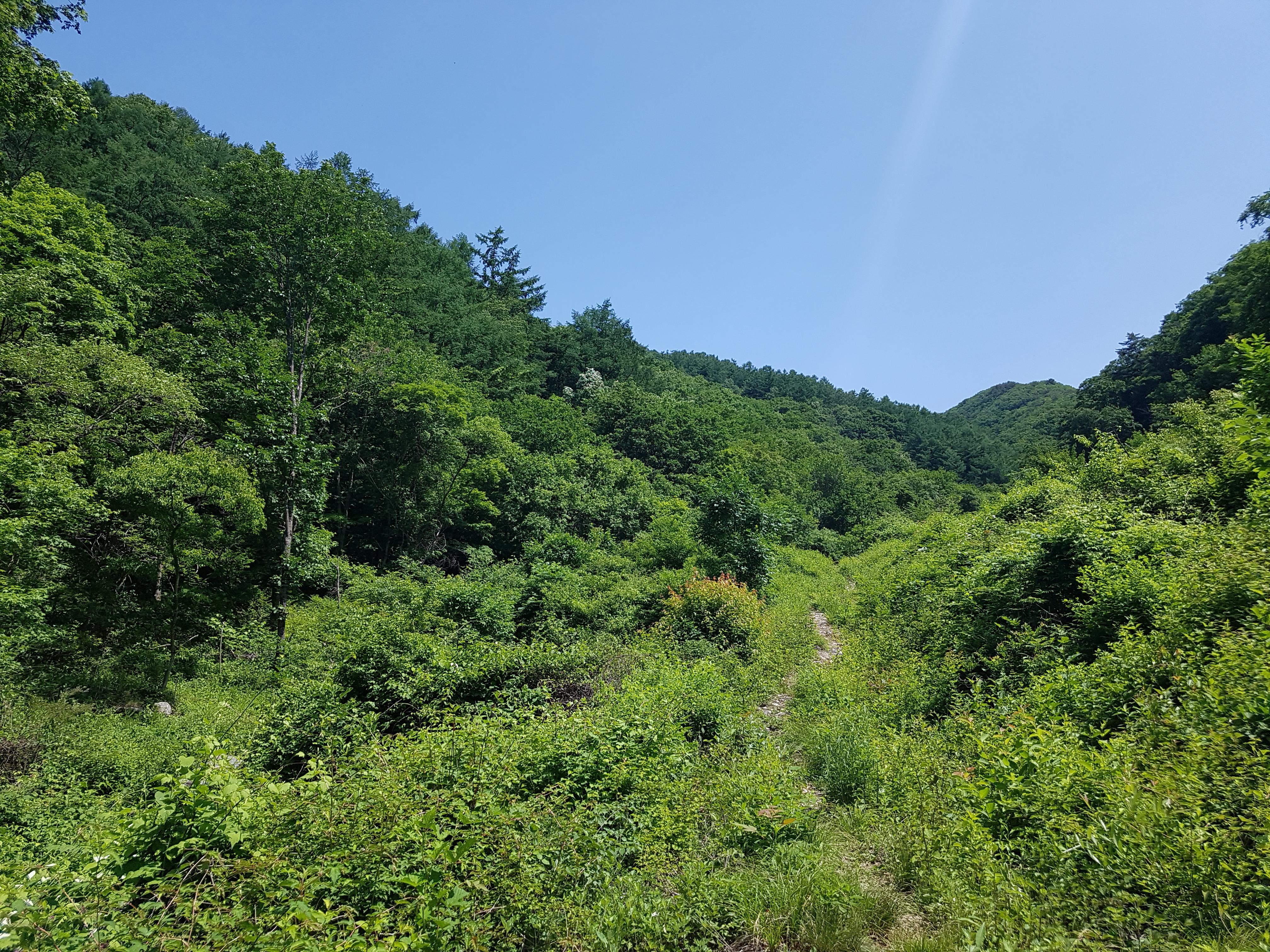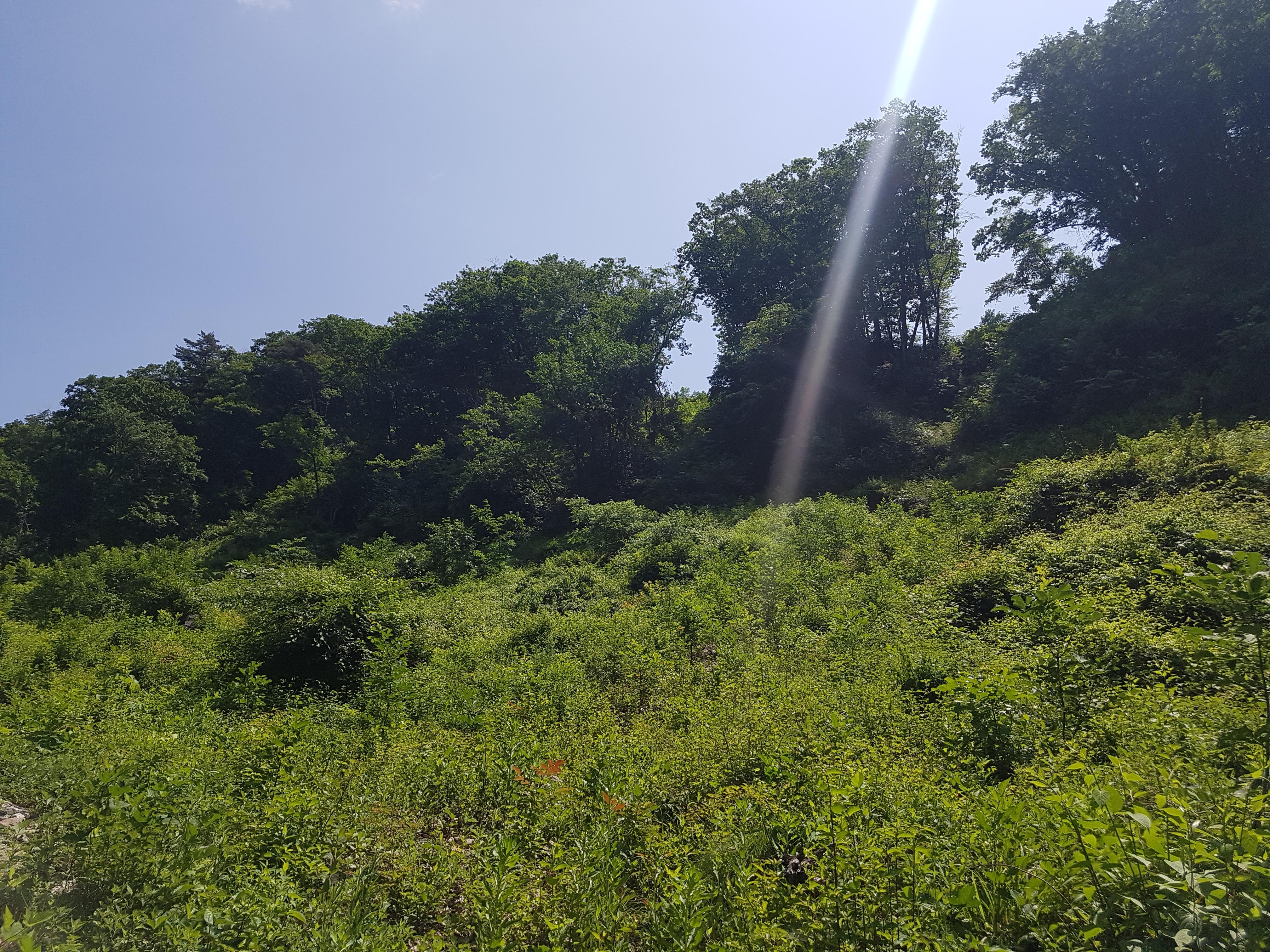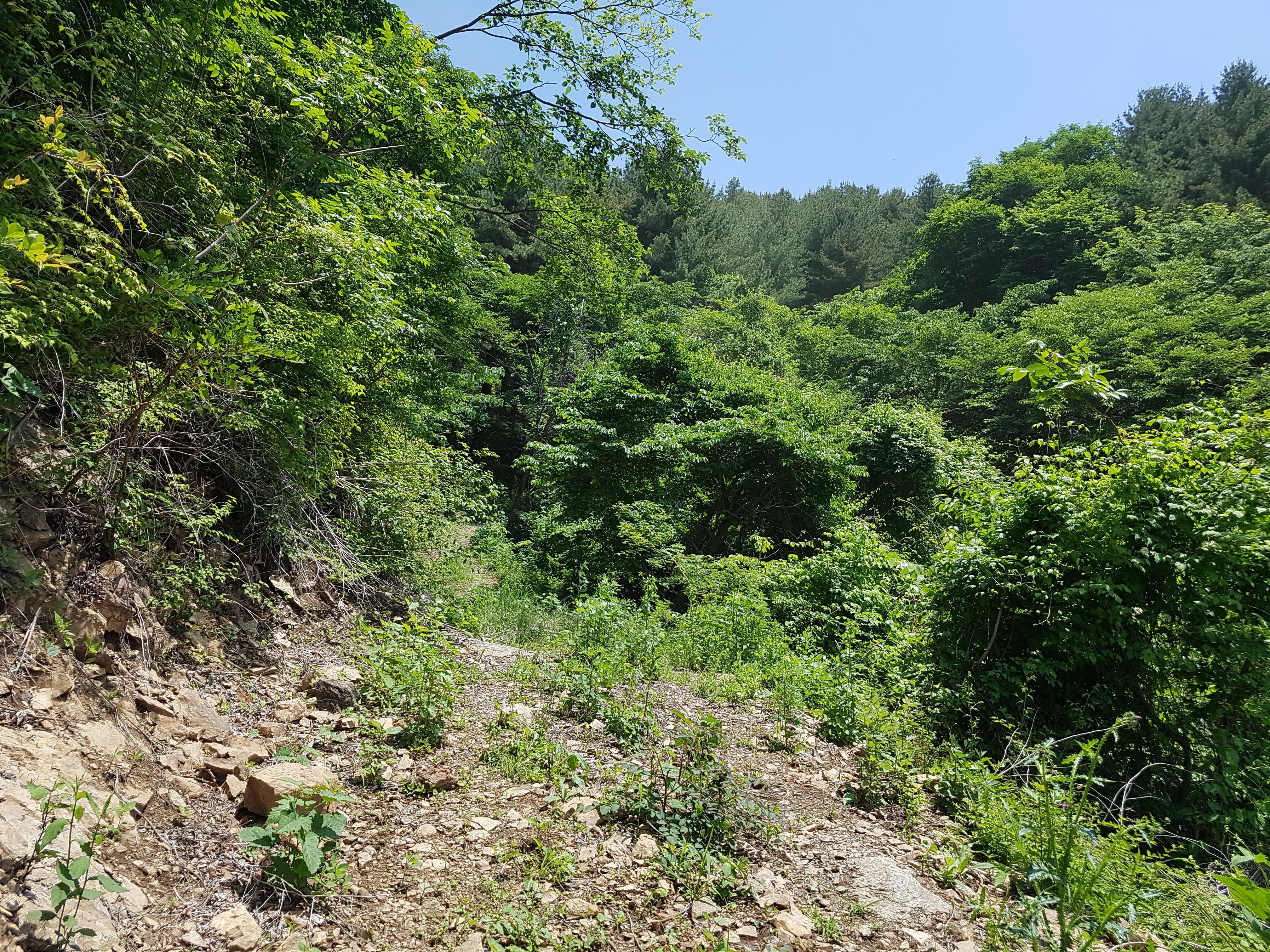 블로그(https://blog.daum.net/0709im/367)를 찾아 확인해보니 군부대를 왼쪽에 끼고 진행한 사진이 보여서 이번엔 왼쪽으로 길을 찾아 봤다. 나무가지와 수풀이 무성해 힘들기는 했지만 그래도 지나갈 수는 있었다.