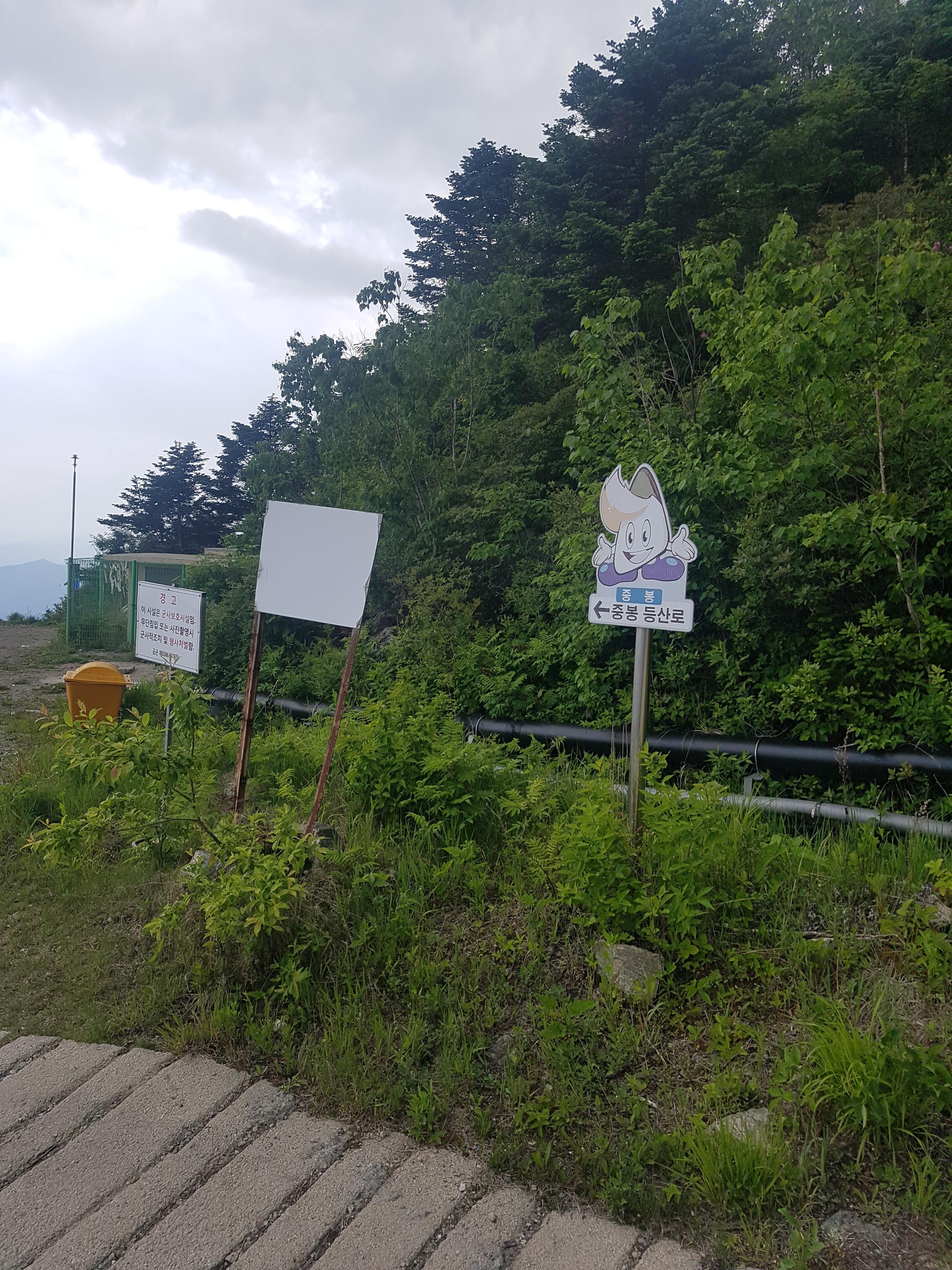 한참을 군부대를 돌아 왔더니 임도가 나오고 중봉으로 가려면 이 임도를 따라 다시 군부대를 우회해야 한다.