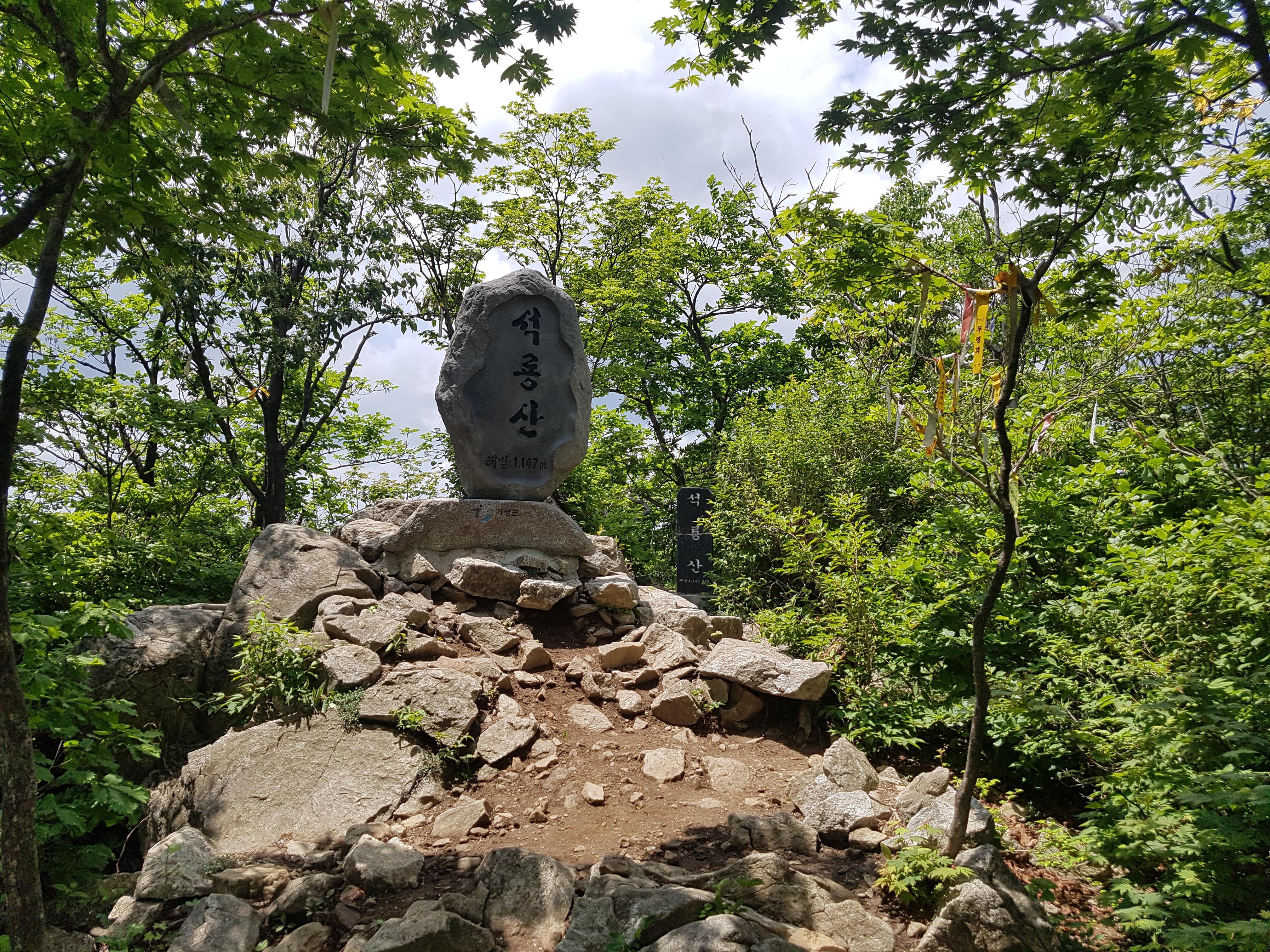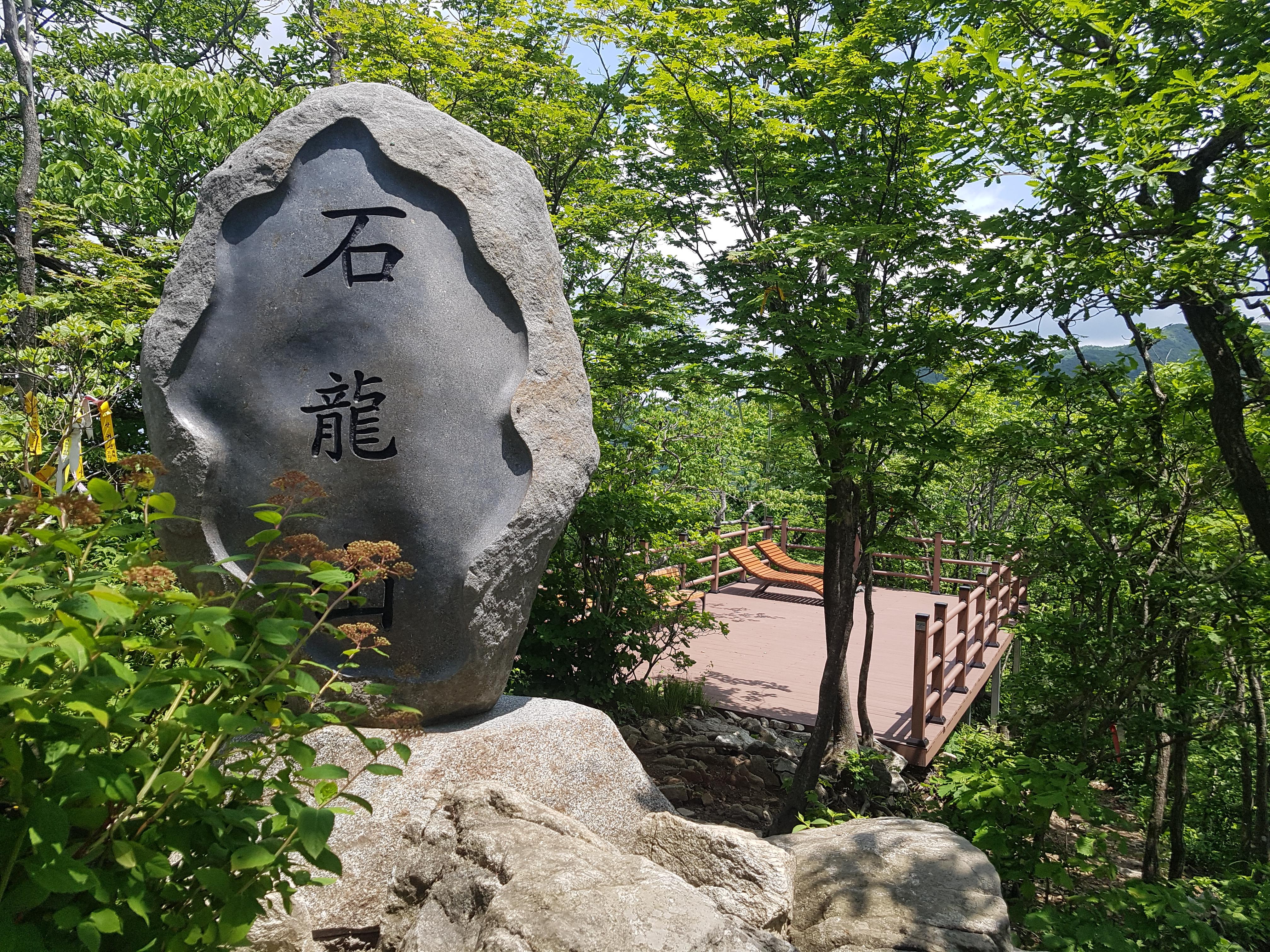 석룡산 정상 도착. 정상에 쉼터가 조성되어 있다.