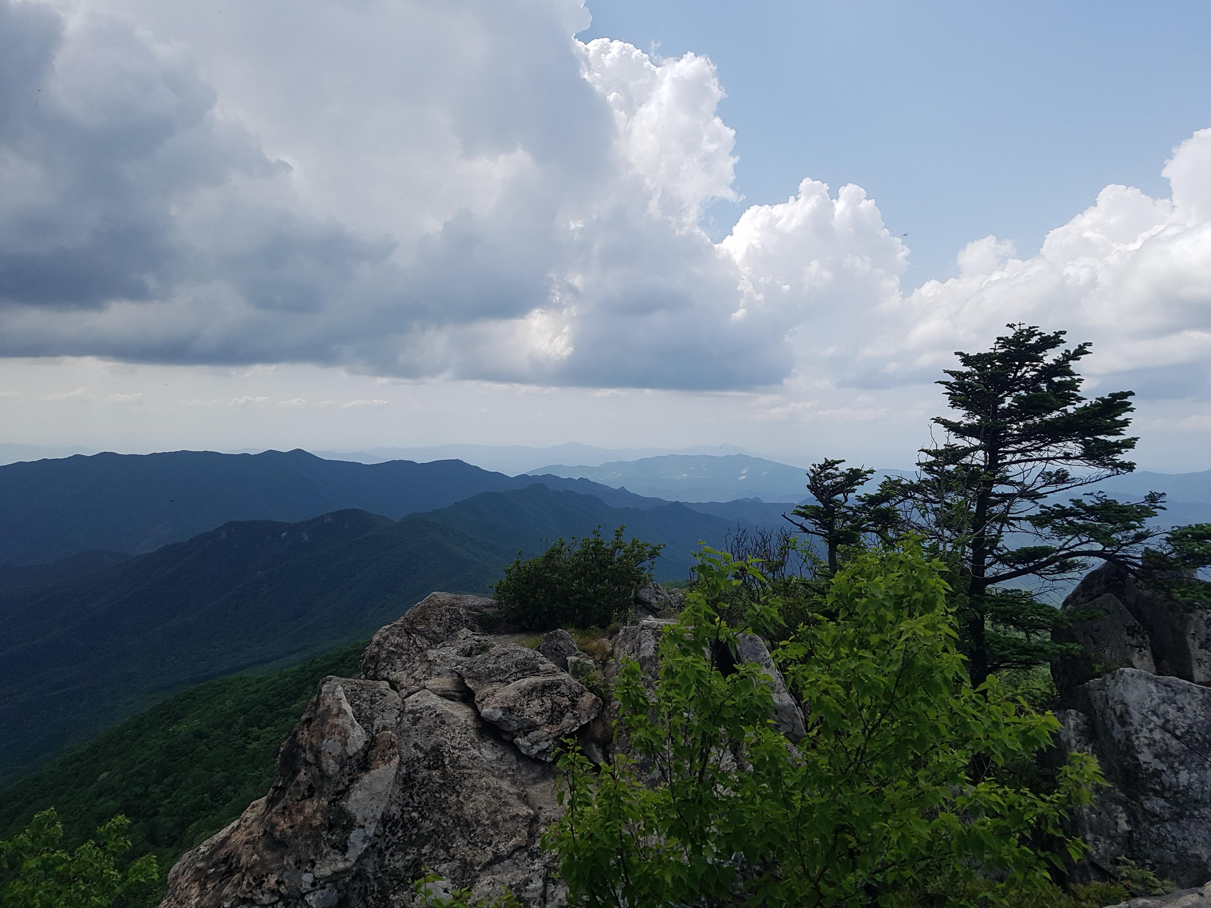 다시 등산로로 접어들어 중봉으로 향하기 시작하자 갑자기 빗방울이 떨어지기 시작한다. 일기예보에 소나기가 있을거라고 했던 터라 예상은 했는데 생각보다 빗방울 세기가 점점 굵어진다.